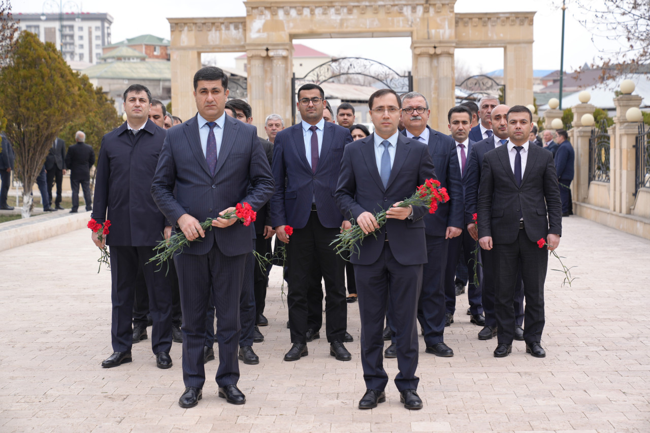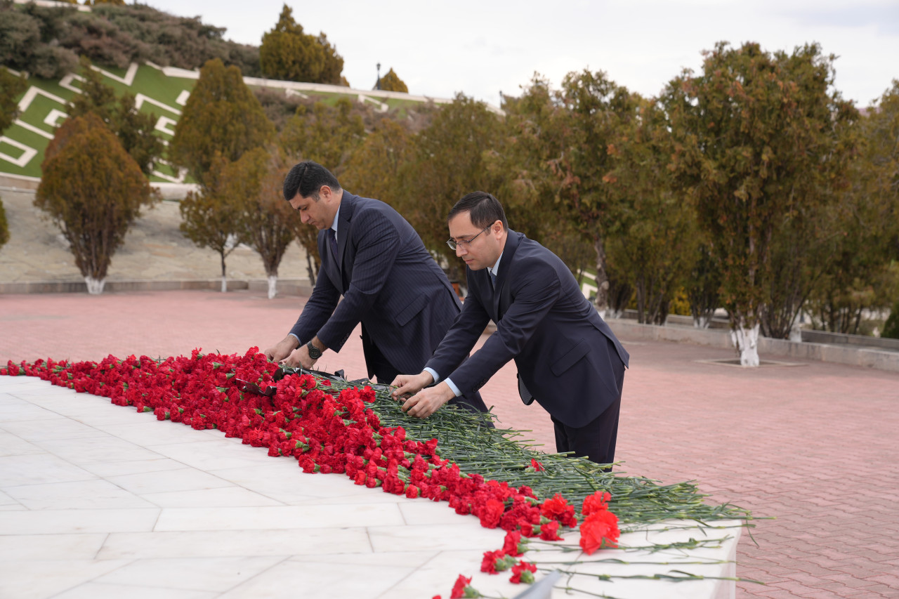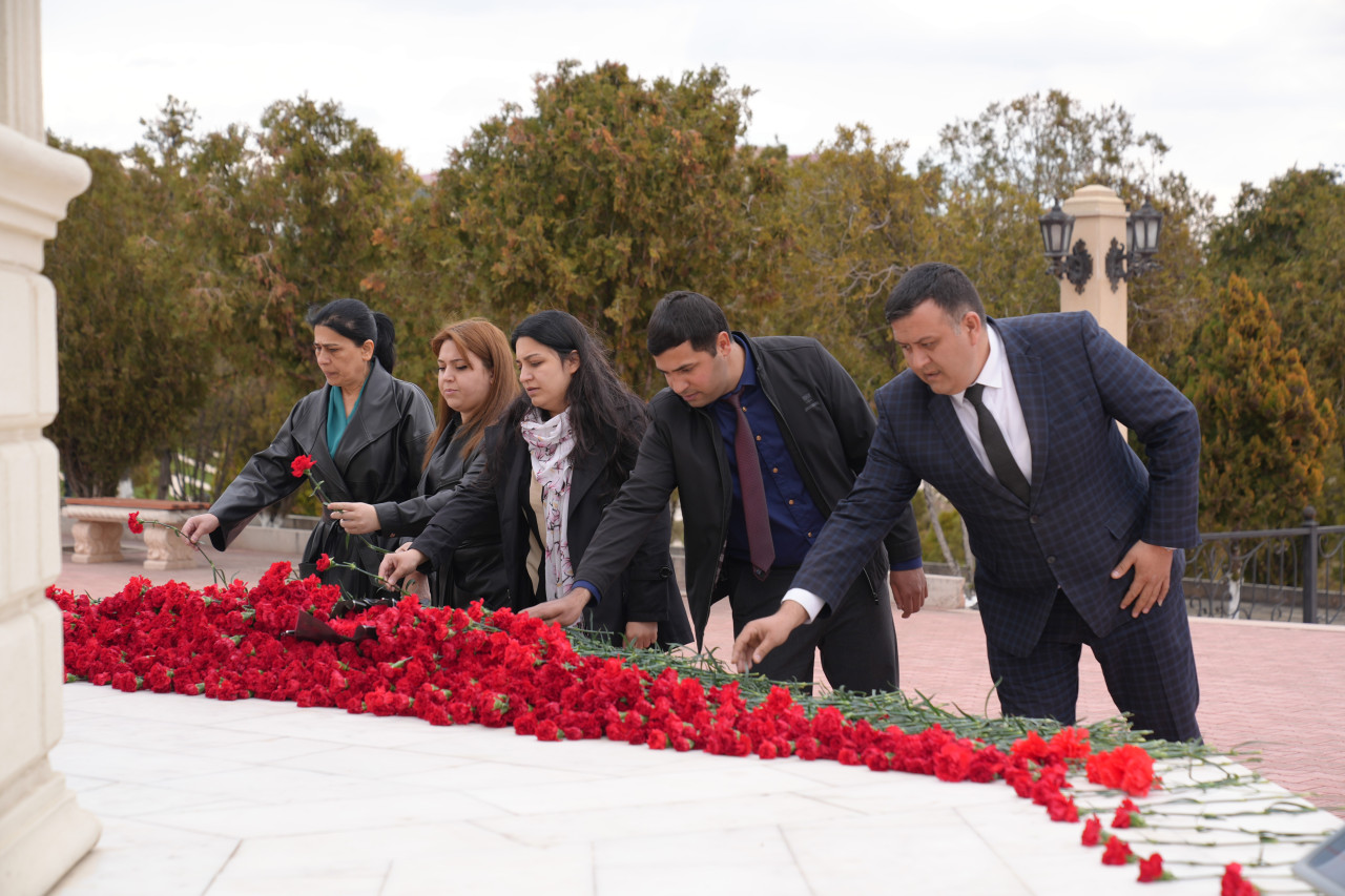 Abidə önünə güllər qoyulub, Xocalıda soyqırıma məruz qalmış soydaşlarımızın xatirəsi dərin ehtiramla yad edilib.